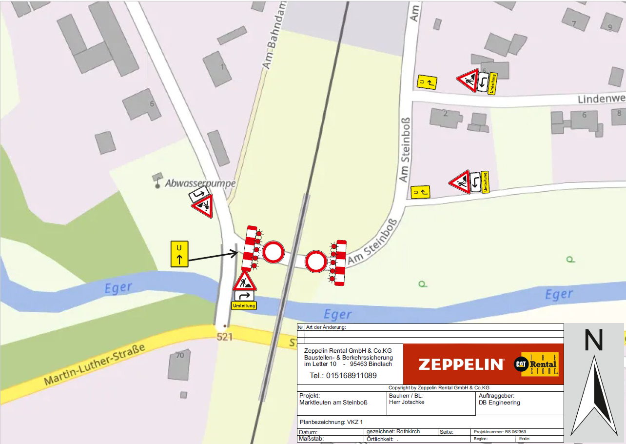 Für die Arbeiten soll ein Kran bzw. ein LKW mit Teleskop-Arbeitsbühne zum Einsatz kommen. Aus diesem Grund wird durch das Landratsamt die halbseitige Sperrung der Egerstraße sowie die Vollsperrung der Ortsstraße am Steinboß für diesen Bereich angeordnet.