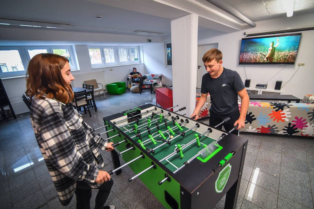 Der Jugendraum befindet sich im Untergeschoss der ehemaligen Hauptschule - Eingang Sporthalle.